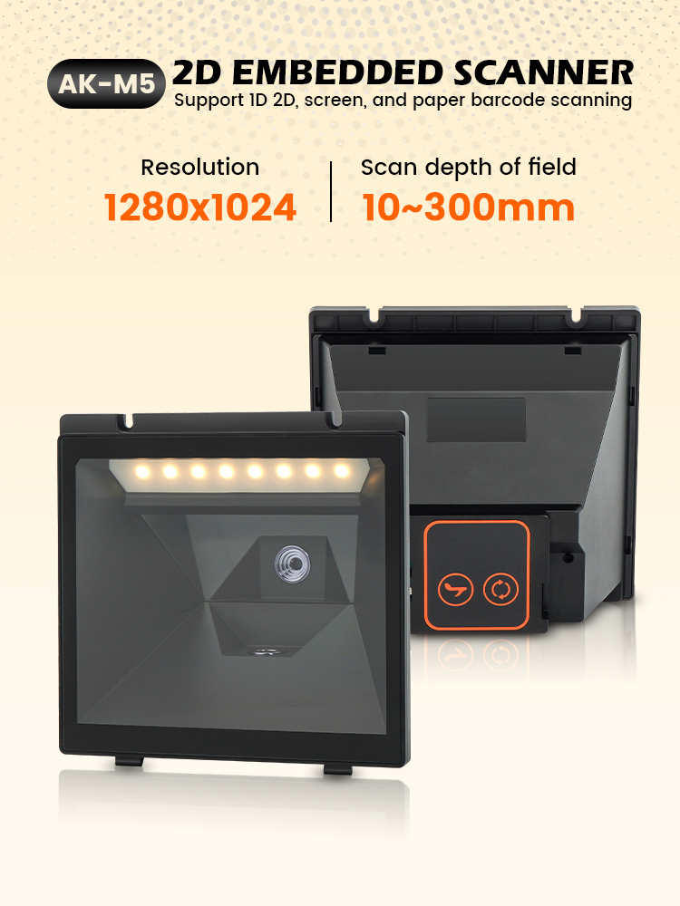 AK-M5 is an advanced embedded barcode scanner that boasts remarkable decoding prowess and seamless compatibility with diverse systems. Its rugged build ensures reliability, while the ability to handle various 1D and 2D codes makes it a versatile choice for countless applications.